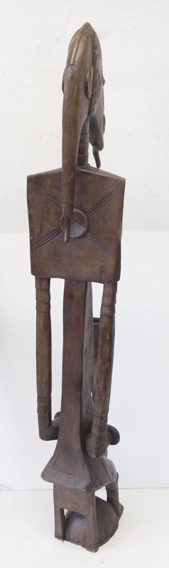 CARVED AFRICAN DOGON FIGURE: 68'' x 11'' x 12''