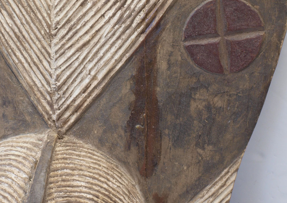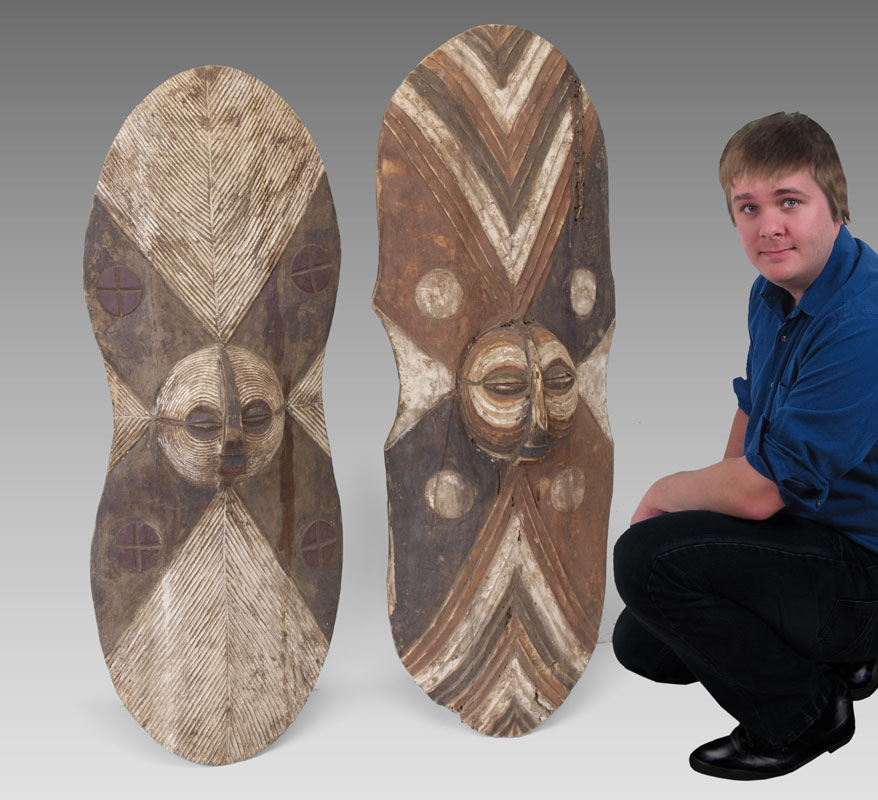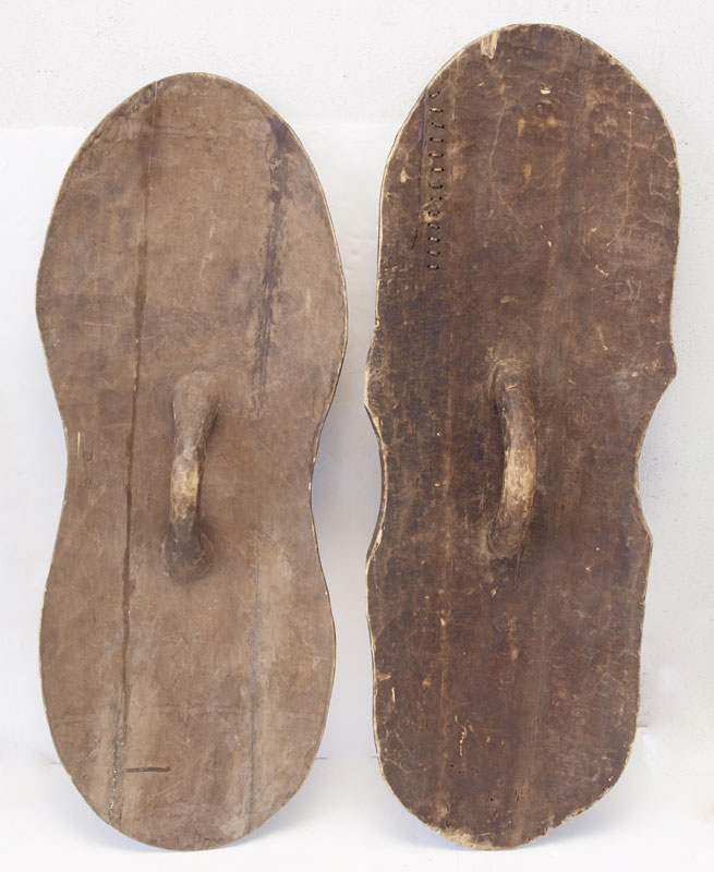 CARVED AFRICAN PAIR SONGYE KIFWEBE SHIELD: 45'' x 15'' x 10''