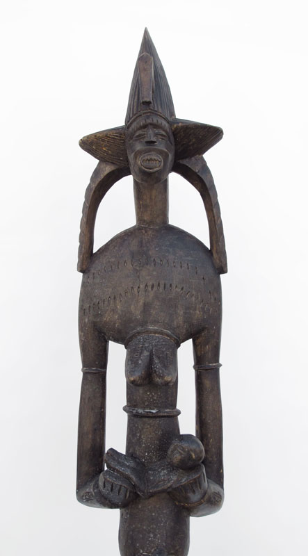 CARVED AFRICAN SENUFO MATERNITY FIGURE: 58'' x 10'' x 10''