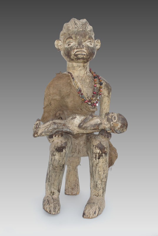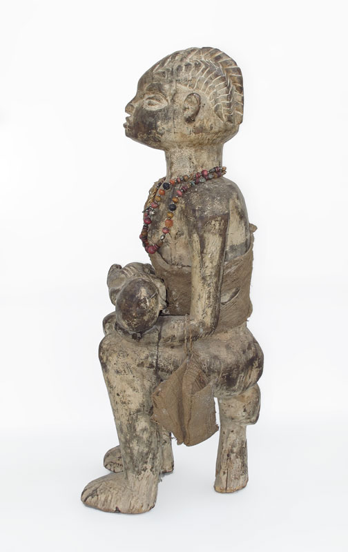 CARVED AFRICAN YORUBA MATERNITY FIGURE: 35'' x 17'' x 13''