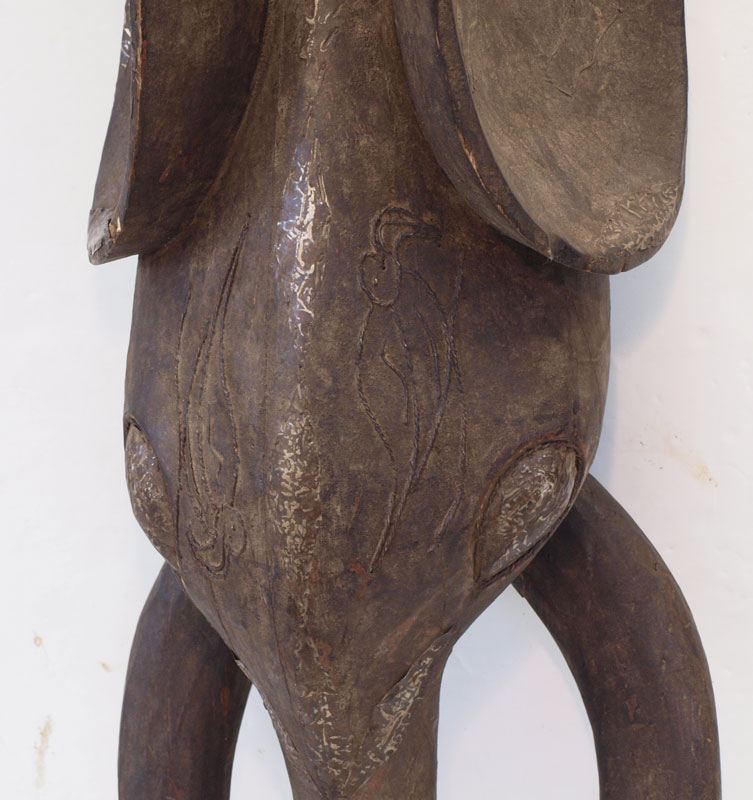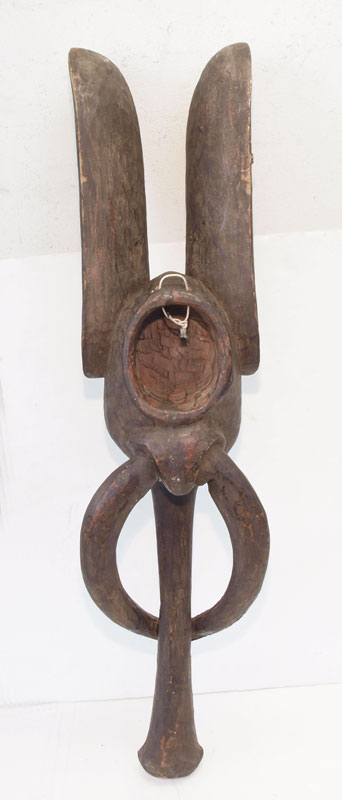 CARVED AFRICAN CAMEROON ELEPHANT MASK: 53'' x 12'' x 12''