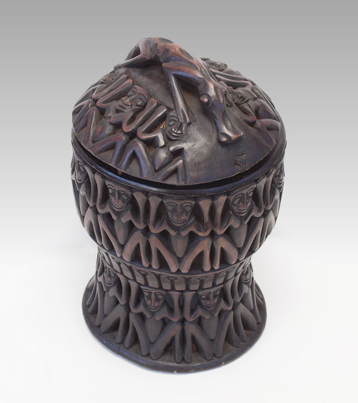 CARVED AFRICAN SMALL BAMILEKE POT: 22'' x 13''