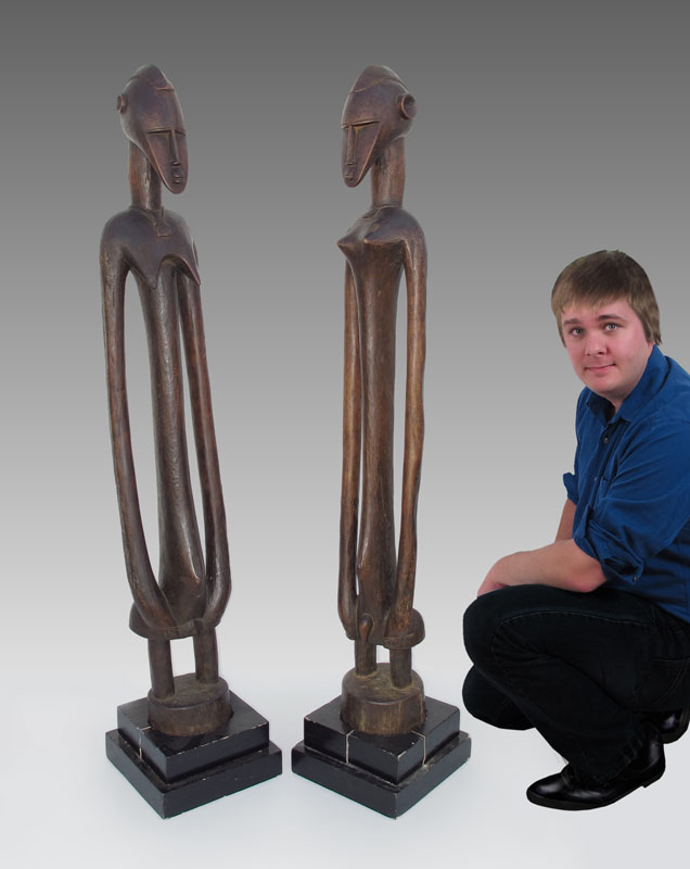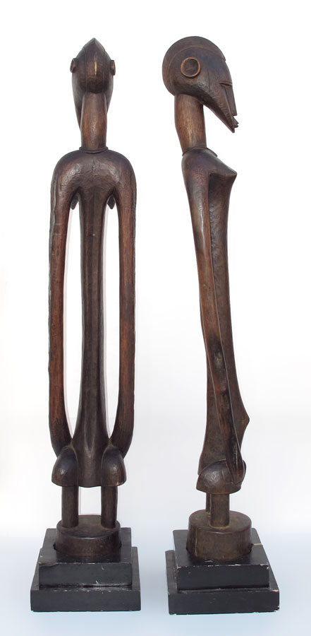 PAIR OF CARVED AFRICAN SUNUFO RHYTHM POUNDERS: 50'' x 8'' x 7''