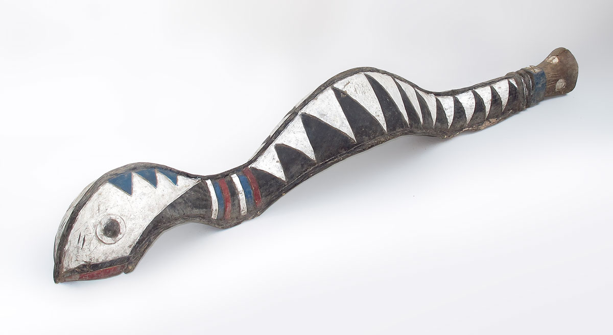 CARVED AFRICAN BONSONYI BAGA SNAKE: 77'' x 12'' x 12''