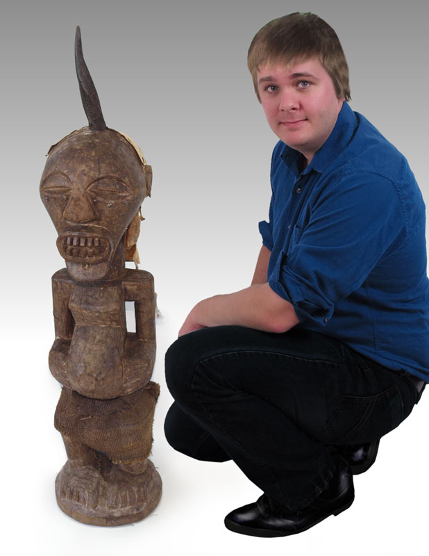 CARVED AFRICAN SONGYE POWER FIGURE: 40'' x 9'' x 9''