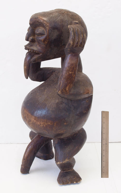 CARVED AFRICAN BAKONGO MASCULINITY FIGURE: 30'' x 15'' x 15''