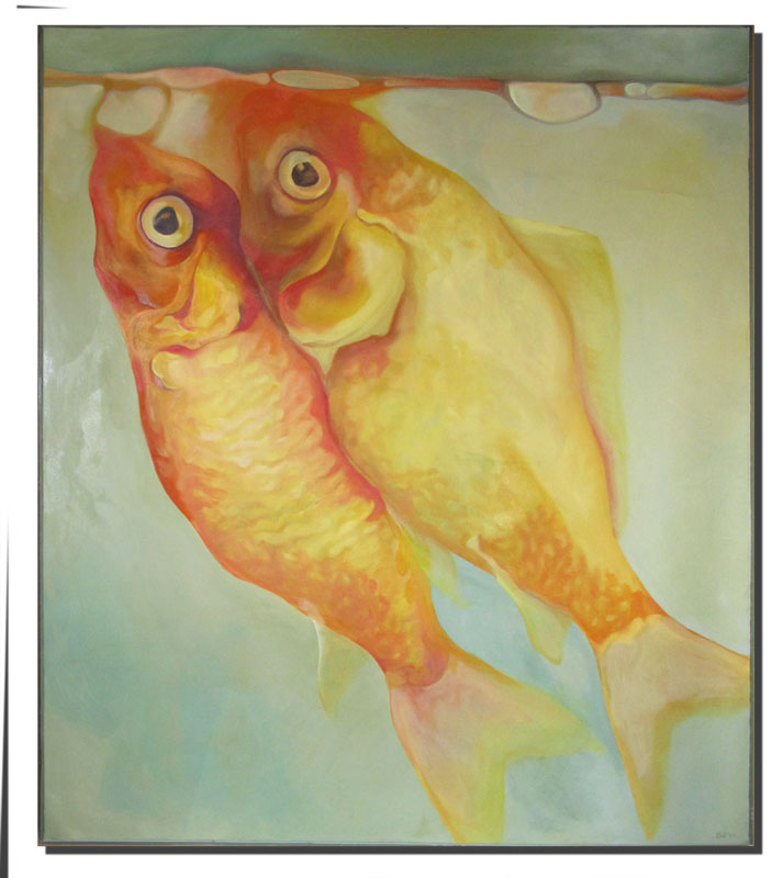 PENELOPE HOPE DEYHLE ? GOLD FISH PAINTING: Oil/Canvas, 56'' h. x 47 1/2'', signed lower right and dated '01.