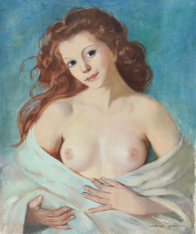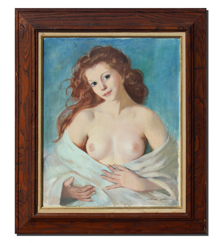 SZANTHO, Maria, (Hungarian, 1898-1984): Portrait of a Red-Headed Beauty Revealing Herself, Oil/Canvas, 24'' x 20'', signed lower right Szantho Maria, encased in a wooden frame, 32'' x 27 1/2''.