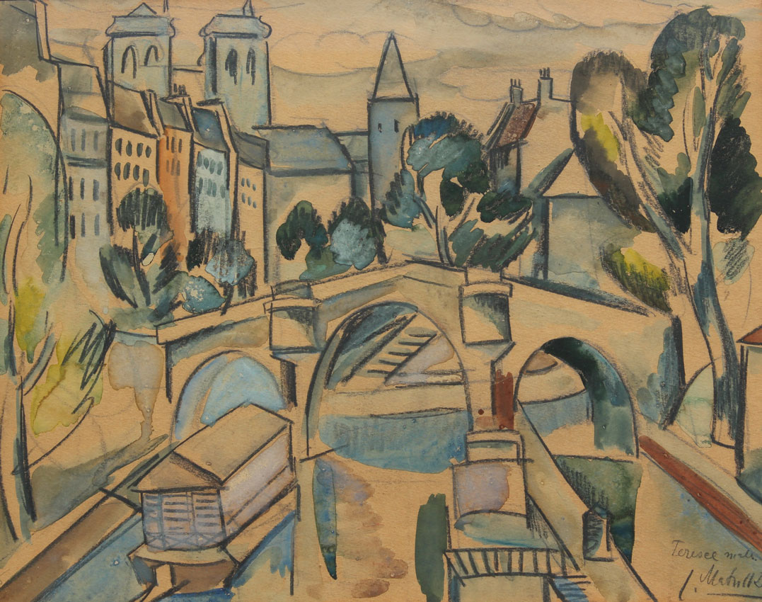 MATULKA, Jan, (American, 1890-1972): European City Canal Scene, probably Venice, Watercolor/Charcoal, sight size 11 3/4'' x 14 3/4'', illegibly titled and signed lower right, wooden frame, 20 1/2'' x 23 1/4''.