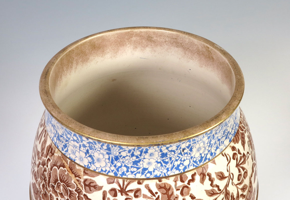 LARGE DOULTON LAMBETH FLOOR VASE: Retailed by Bigelow Kennard, Boston. 24'' h. x 12'' dia.