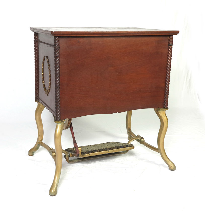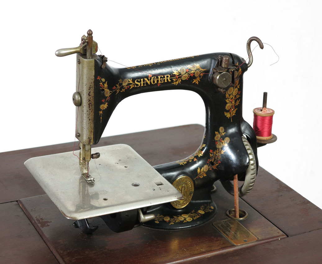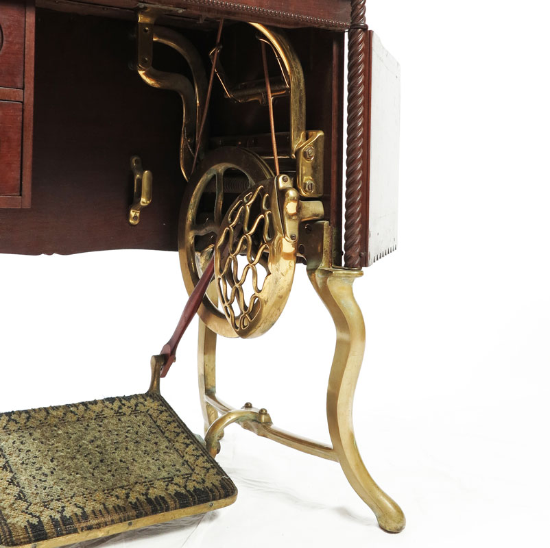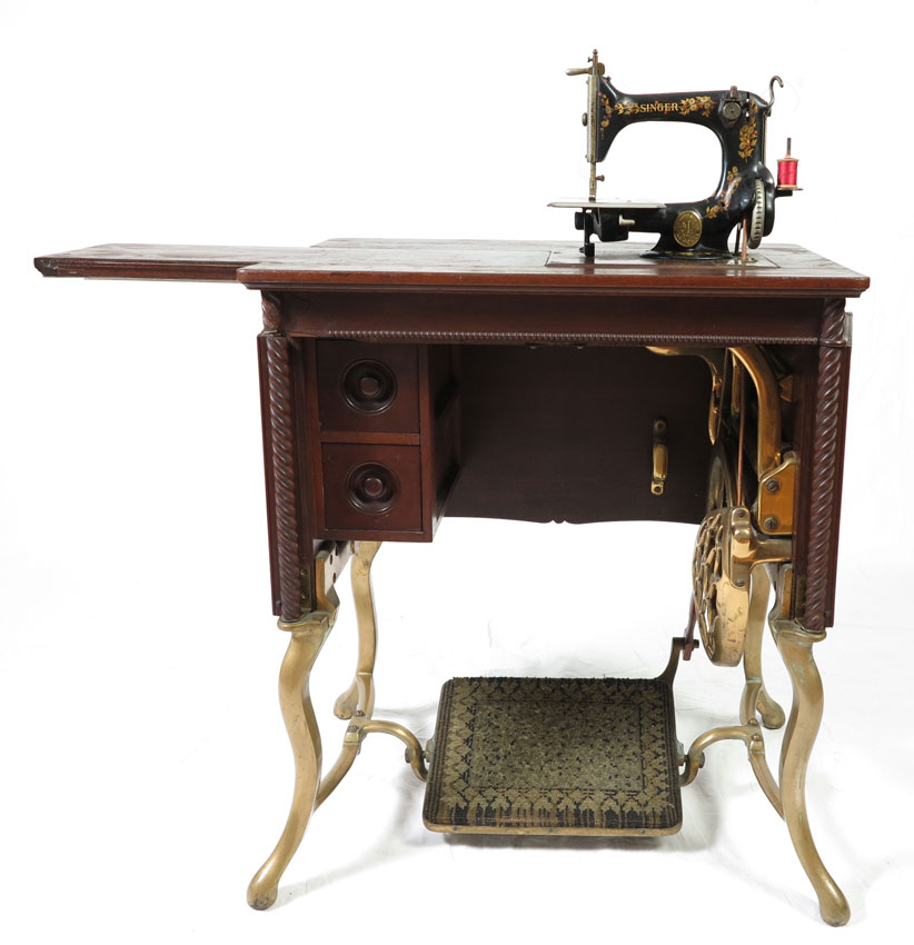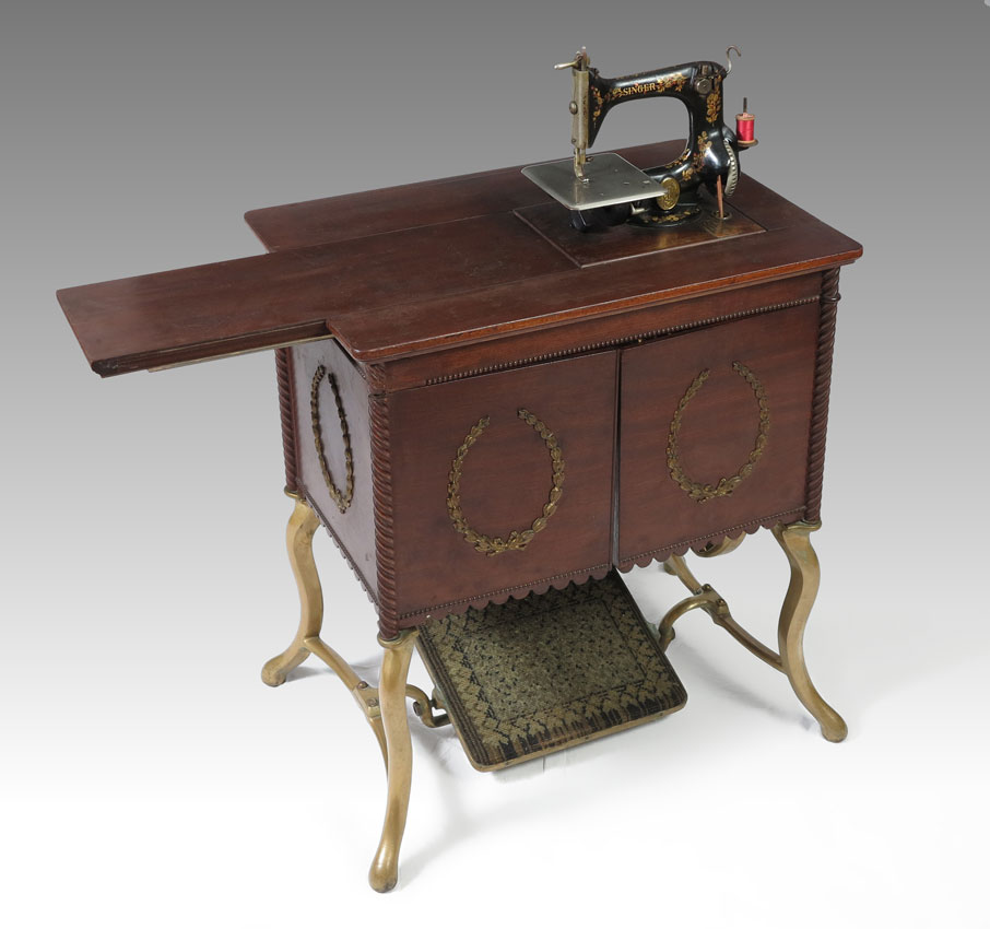 RARE ALL BRASS SINGER SEWING MACHINE FROM THE 1901 PAN - AMERICAN EXPOSITION: Reputedly one of only two all brass Singer Sewing machines, this is the example that was displayed for the 1901 Pan - American Exposition in Buffalo, New York. Serial number on plaque near base 15919409. 29'' h. x 25'' x 17''.