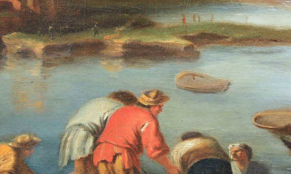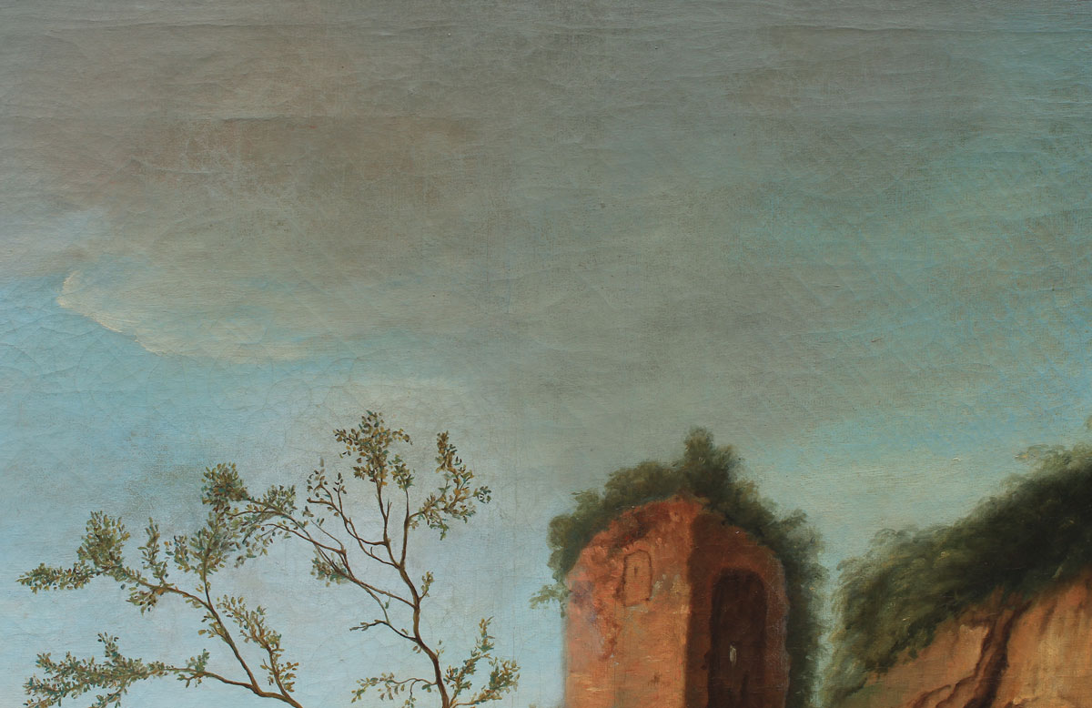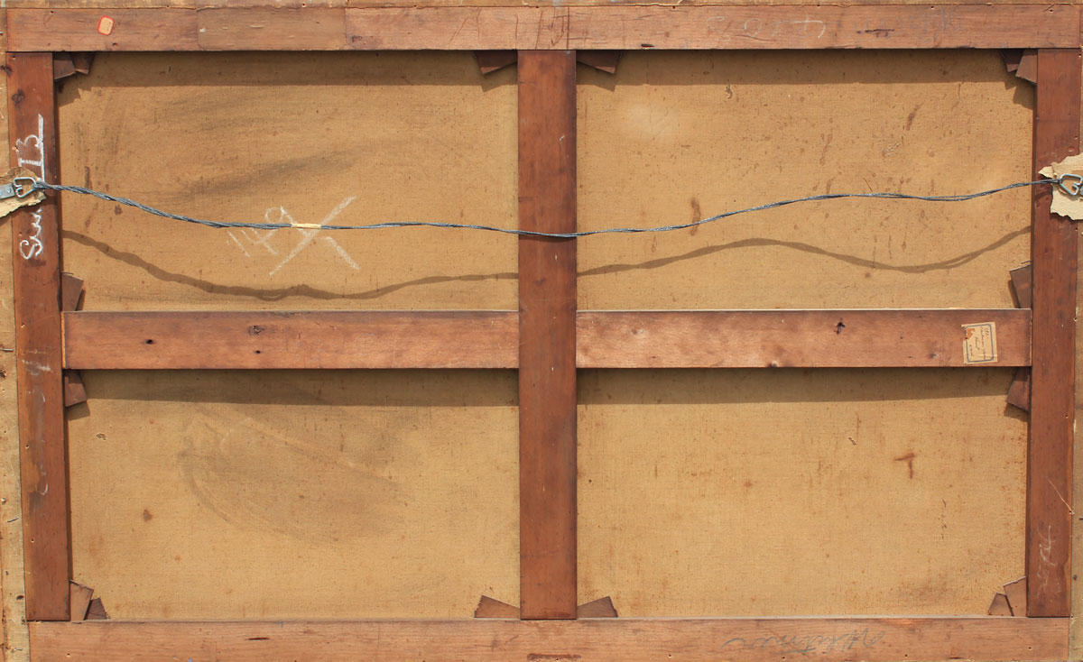 CONDITION: Several minor flecks, stretcher wear, scattered craquelure, older restoration, relined, scattered inpaint.