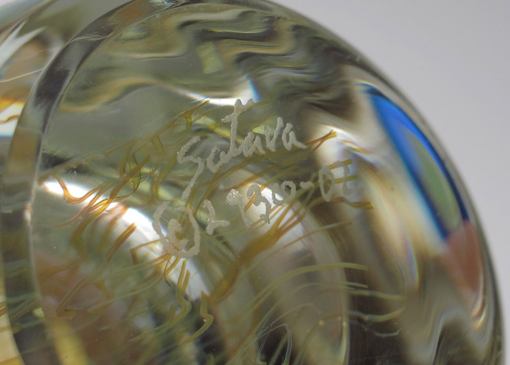 SATAVA, Richard, (American, 20th C.): Ethereal Jellyfish art glass sculpture. Signed Satava and numbered 2930-02. Approx. 6.5'' tall.