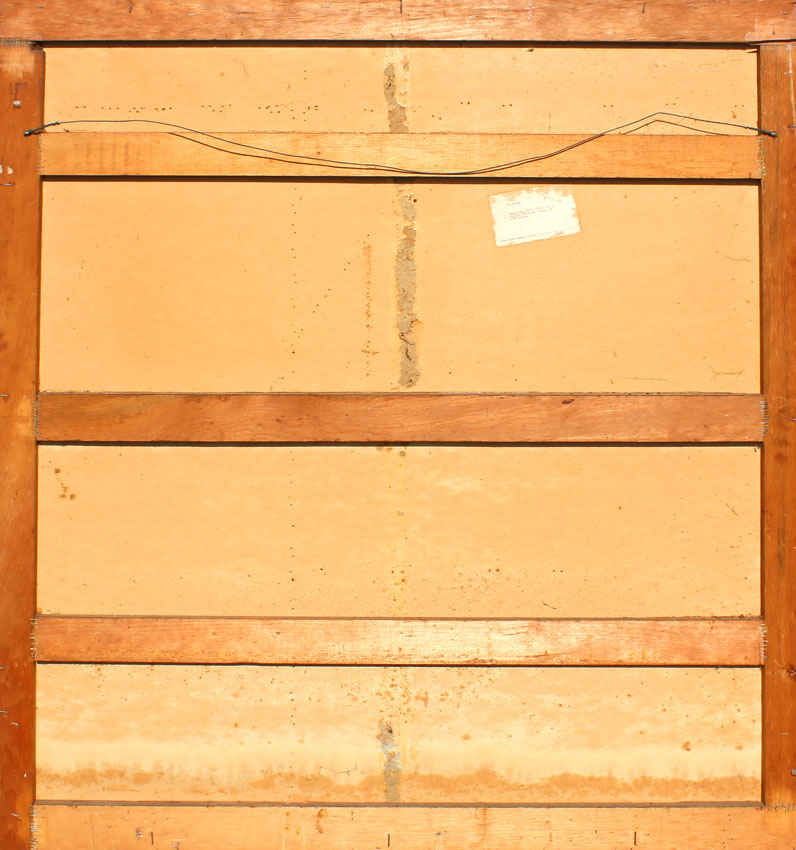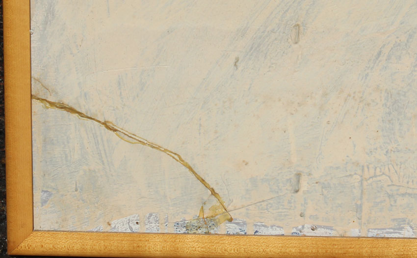 CONDITION: Repair to corner, lower left, looks like there may be some moisture damage of the lower portion of the painting with board rippling.