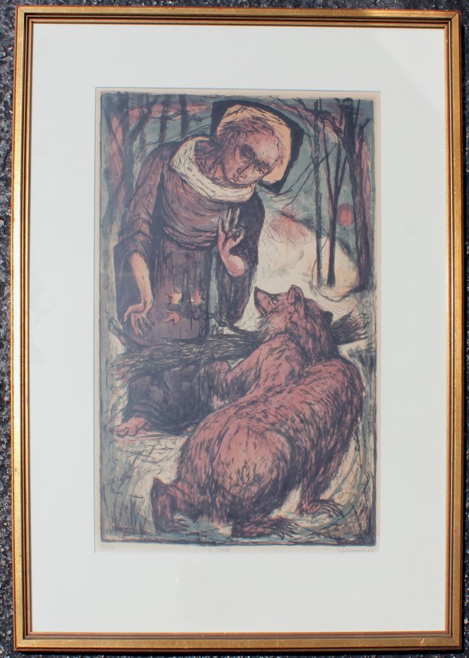 SPRUANCE, Benton Murdoch, (American, 1904-1967): ''Saint Gall'', Color Lithograph, sight size 20 1/4'' x 13 1/2'', pencil signed lower right and dated '54, titled in margin, edition of 30, nicely framed, 29'' x 21''.