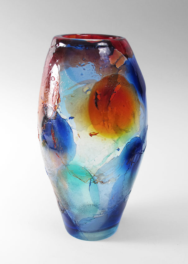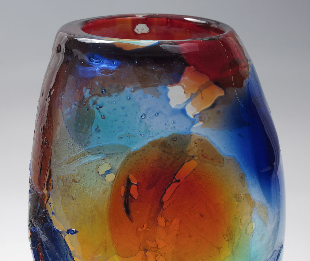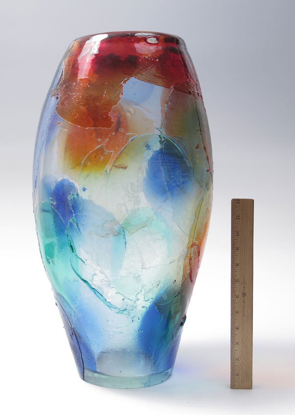 MONUMENTAL GIULIANO TOSI MURANO GLASS VASE: 23'' tall display of patches of colors. Signed Giuliano Tosi. 11'' at the widest point.