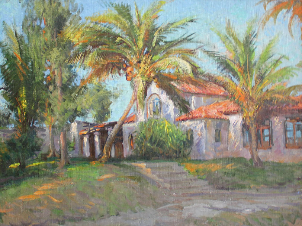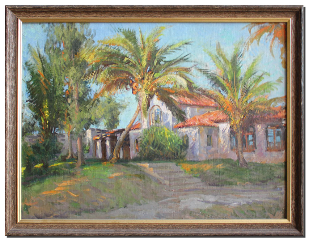 EXCELLENT TROPICAL LANDSCAPE OIL PAINTING: Oil/Canvas, 16 1/2'' x 22'', no visible signature, could be Mexican, Spanish, or Florida, barnwood style frame, 19'' x 24 1/2''.