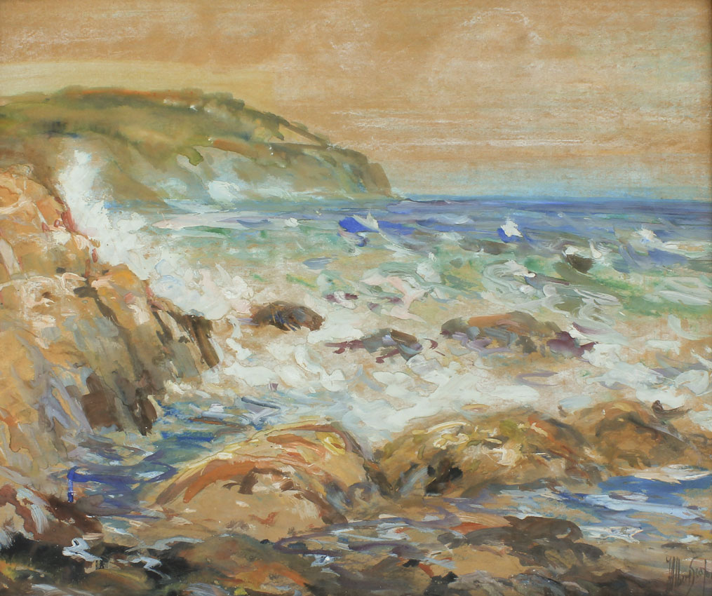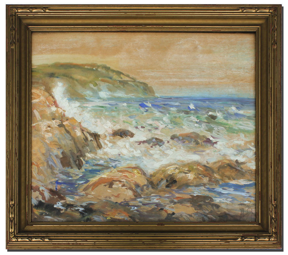 SEAFORD, John Albert, (American, 1858-1936): Coastal Surf Scene, Pastel Watercolor/Gouache, sight size 17 1/2'' x 21 1/2'', signed lower right, encased in period carved and gilded impressionist frame with wear, 22 1/2'' x 26 1/2''.