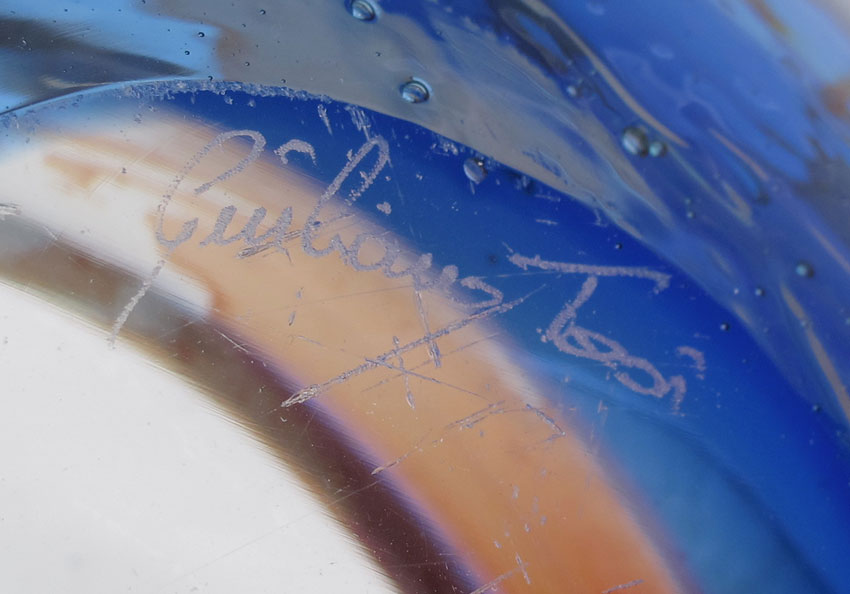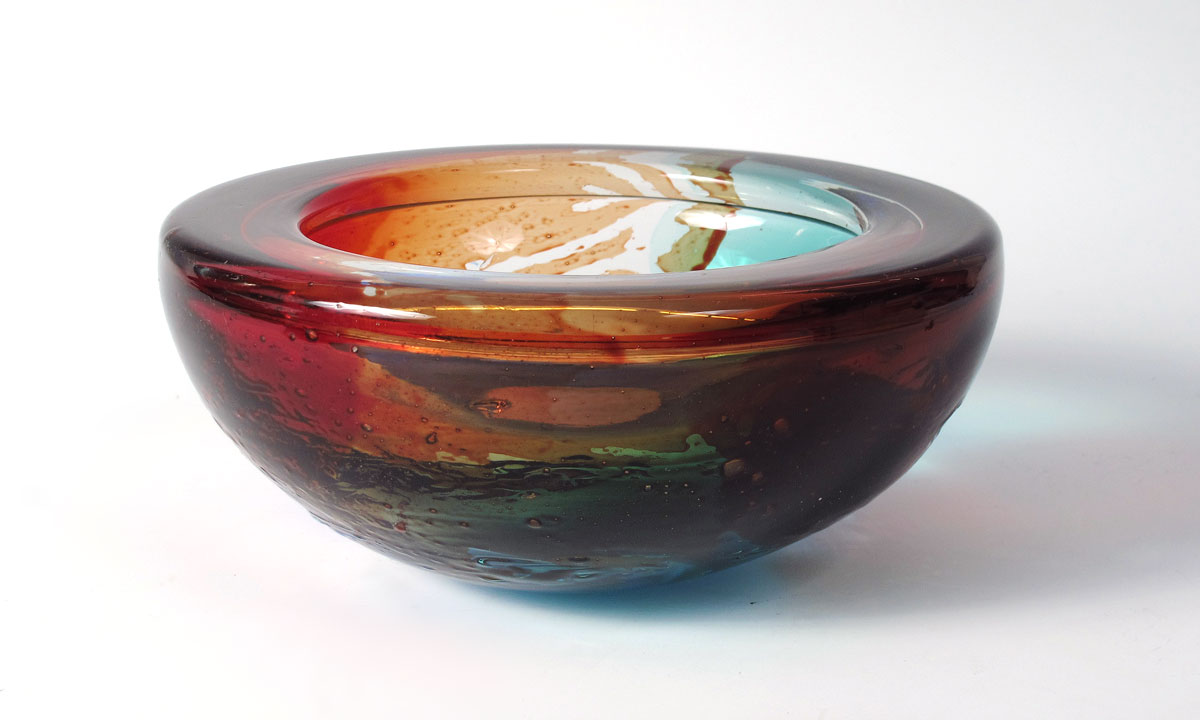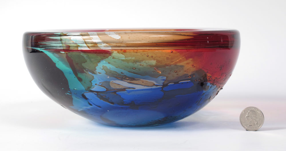 GIULIANO TOSI MURANO ART GLASS BOWL: Thick wall bowl of blended colors, approx. 9'' dia. x 4'' tall.