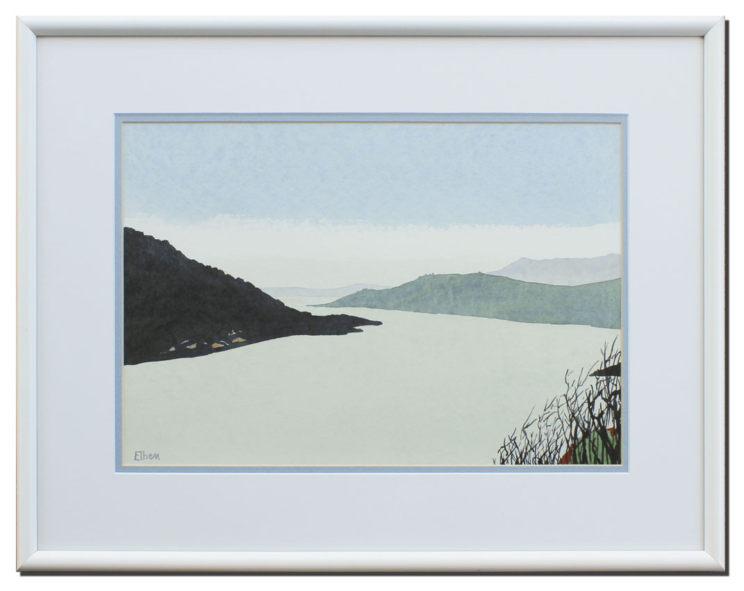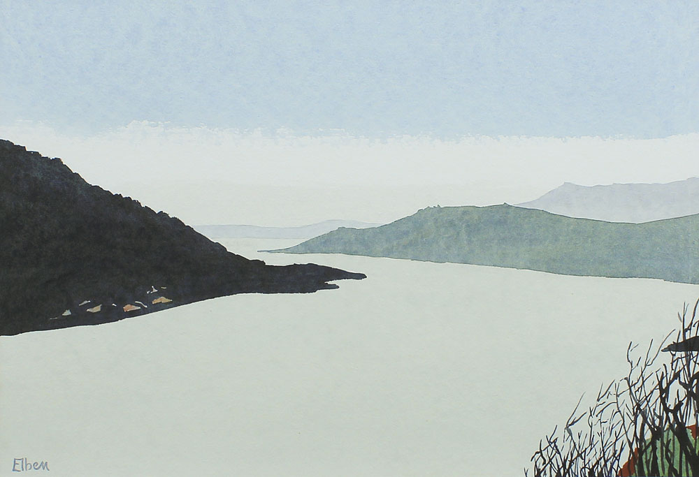 ELBEN, Paul, Knud, (20th Century): Lakeside Scene Watercolor, sight size 12 3/4'' x 19 1/2'', signed lower left, original contemporary white frame, 21 1/4'' x 27 1/2'', gallery information along with artist's bio affixed verso, died in 2000, Gallerie Tenne in Zurich represented Elben's work.