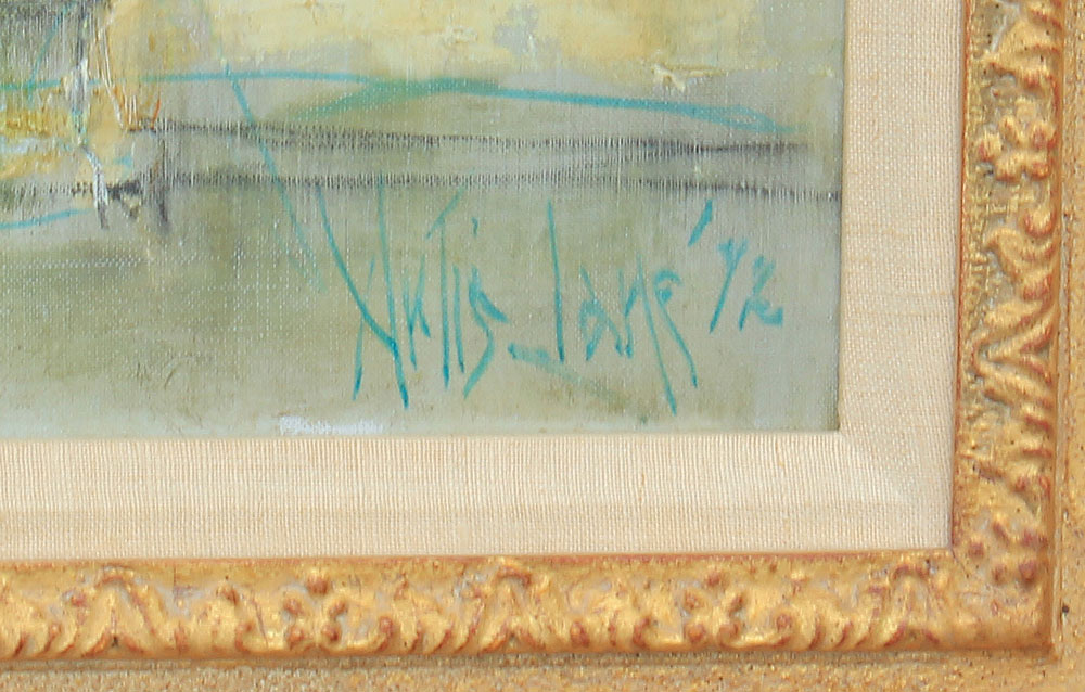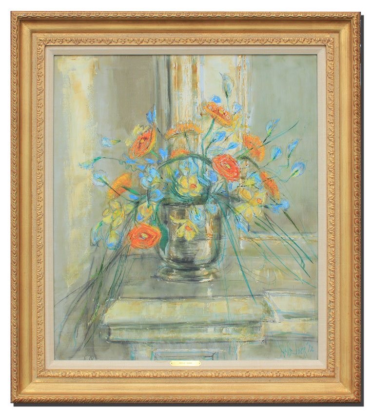 LANE, Artis, (American, 20th Century): Still Life with Flowers in a Glass Vase, Oil/Canvas, 31 1/2'' x 28'', signed lower right, encased in period custom Wally Findlay frame with label affixed verso, 38'' x 33 3/4''.