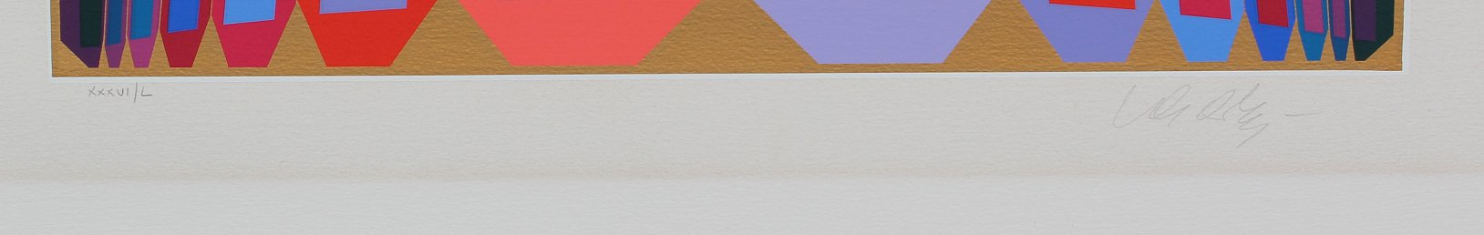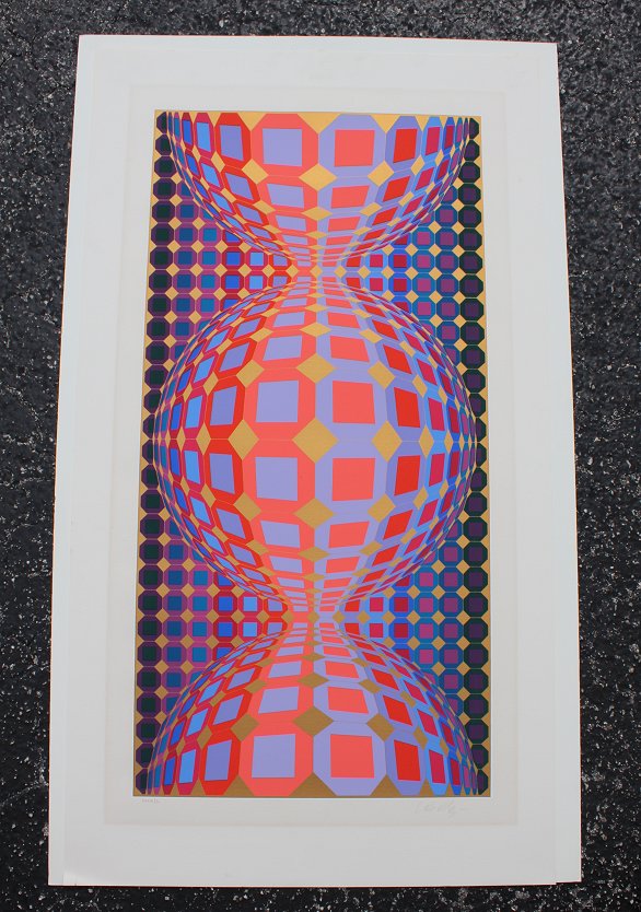 VASARELY, Victor (Hungarian, 1908-1997): Op Art Spherical Serigraph, 40 1/2'' x 23'' with margins, pencil signed lower right, #'d 36/60 lower left, affixed to a white back board with hinged tape, unframed.