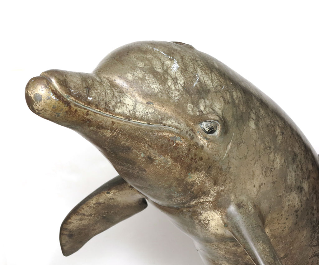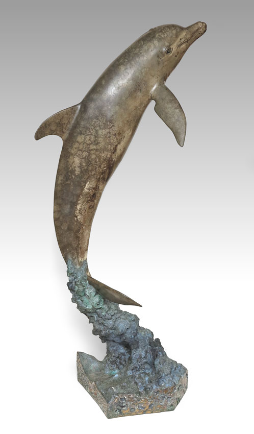 LARGE ROBERT WYLAND DOLPHIN BRONZE FOUNTAIN SCULPTURE: 60'' h., x 24'' w., 20'' depth, incised signature, dated 1992, #'d 73/200, also incised The Wells Family.