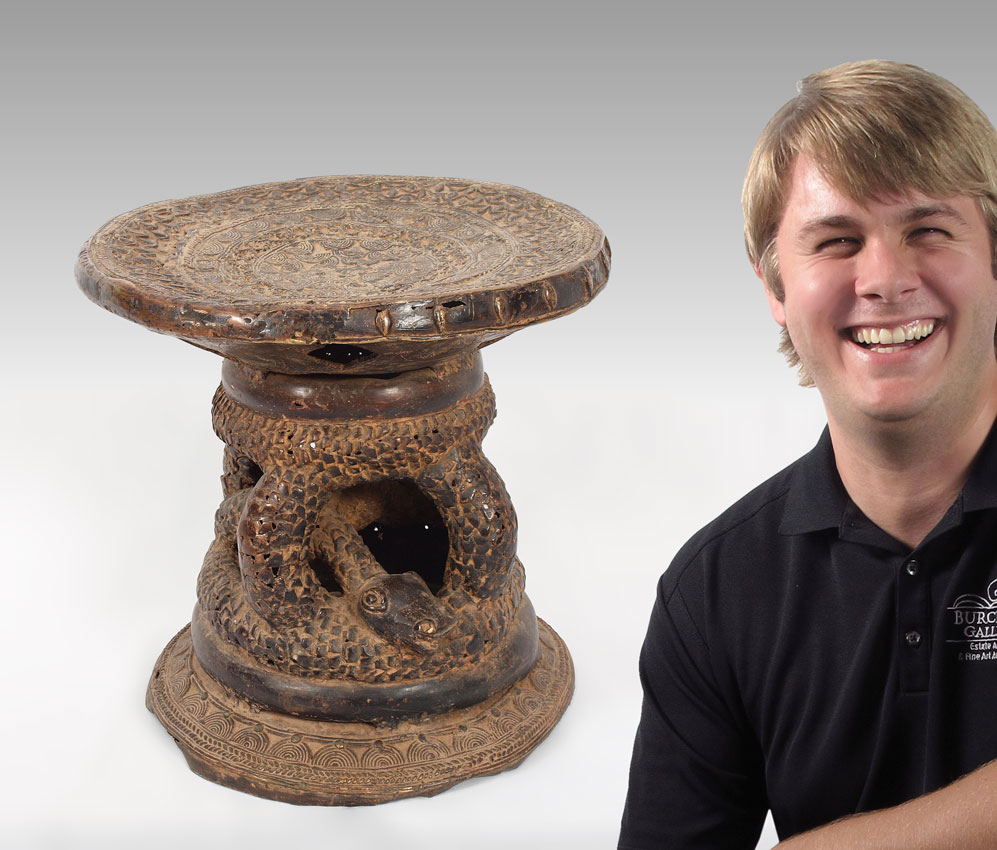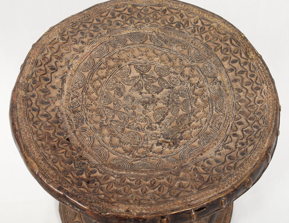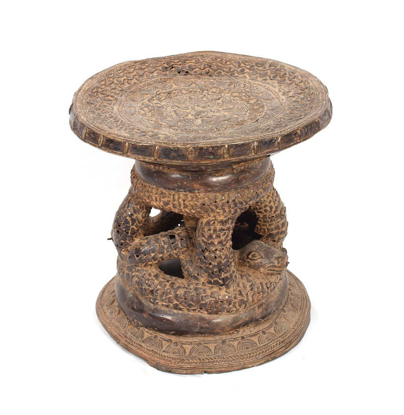 AFRICAN BRONZE TIKAR PRESTIGE STOOL - CAMEROON: 29.5 LBS., 13 1/2'' x 13 1/2''.
