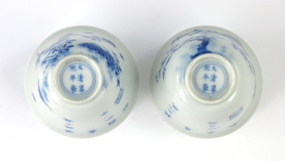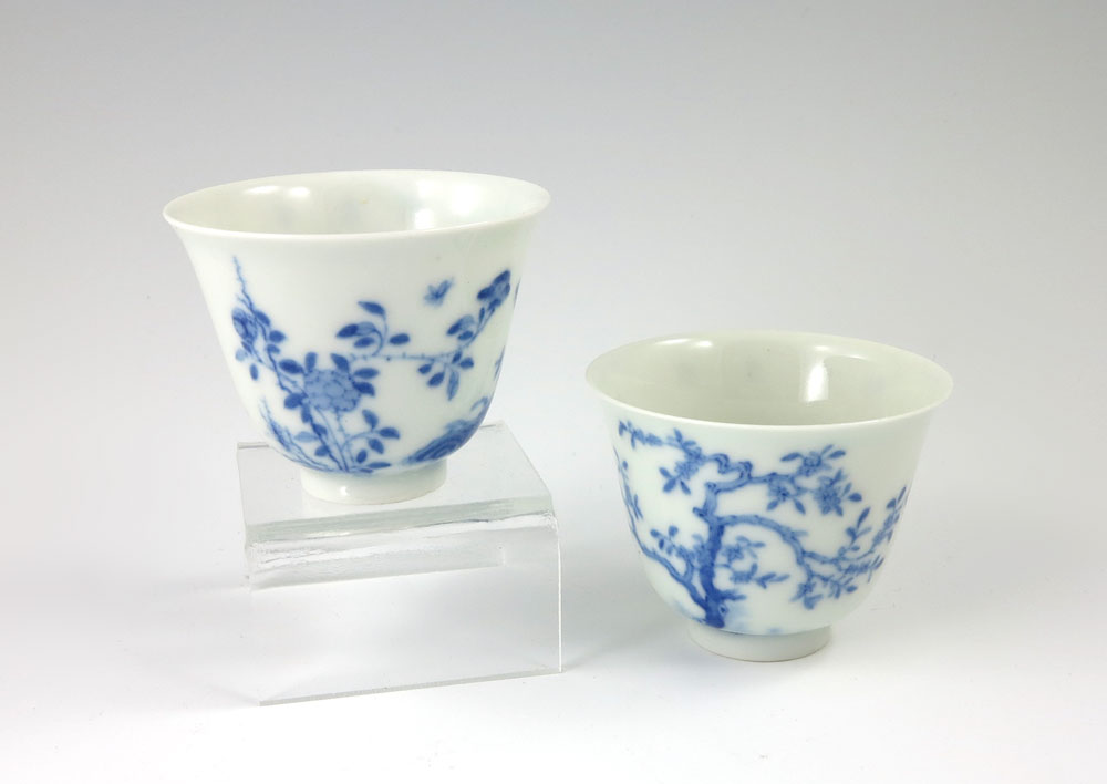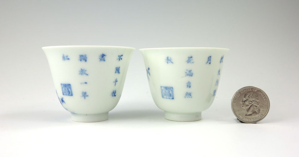 TWO CHINESE PORCELAIN WINE CUPS: Representing two of the twelve months. Approx. 2'' tall x 2 1/4'' dia.
