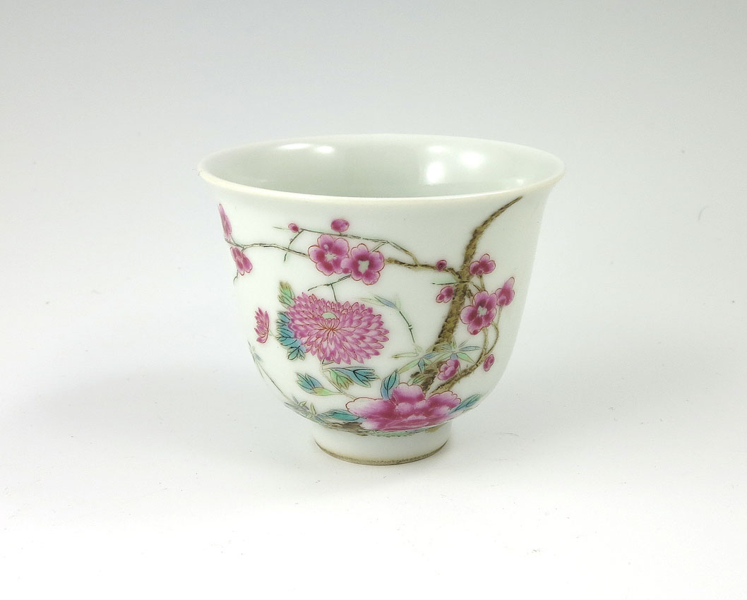 CHINESE ROSE FAMILLE WINE CUP: 2 1/2'' dia.