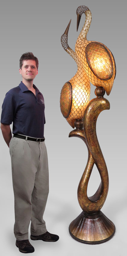 CONTEMPORARY 7 FT STORK FIGURAL FLOOR LAMP: Resin construction. 85'' h. x 19''.