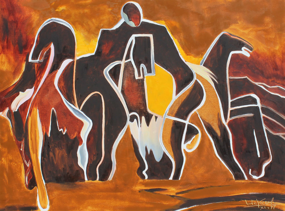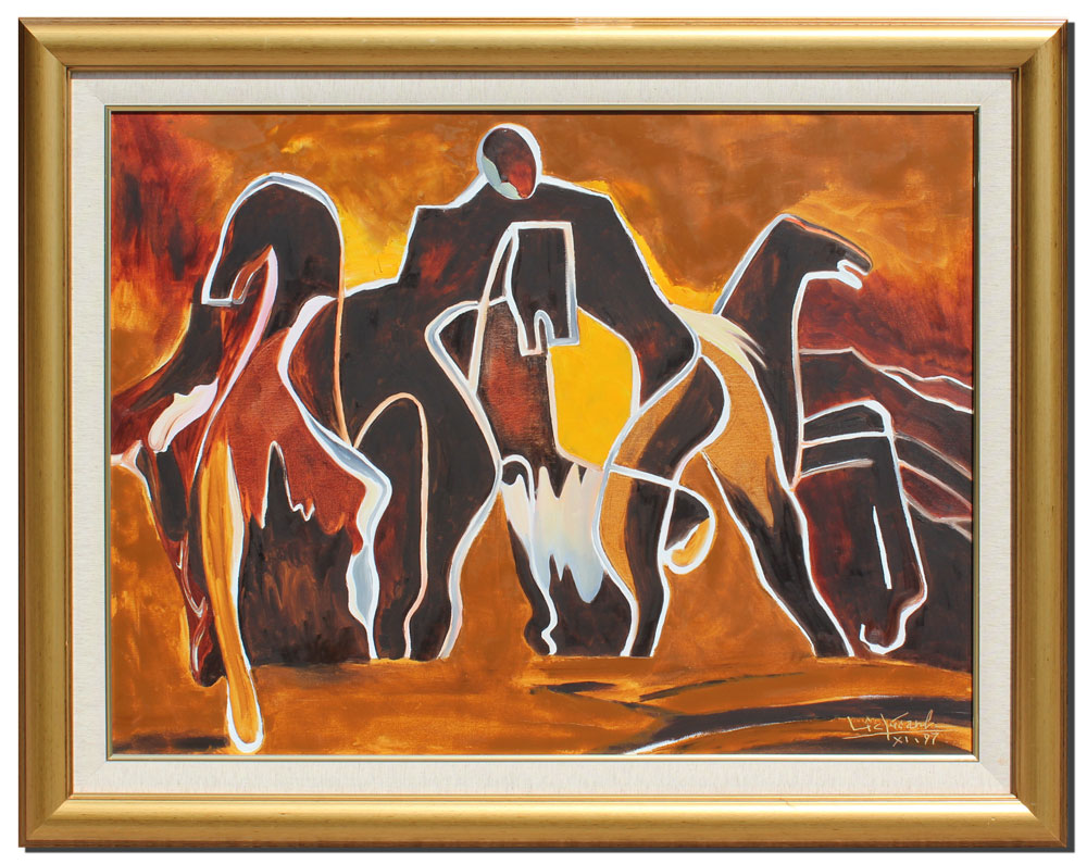 CHUC, Le Dai, (Vietnamese, 1944-): Abstract Horses, Oil/Canvas, 30'' x 40'', signed lower right, dated 97, gilded frame, 38'' x 48''.