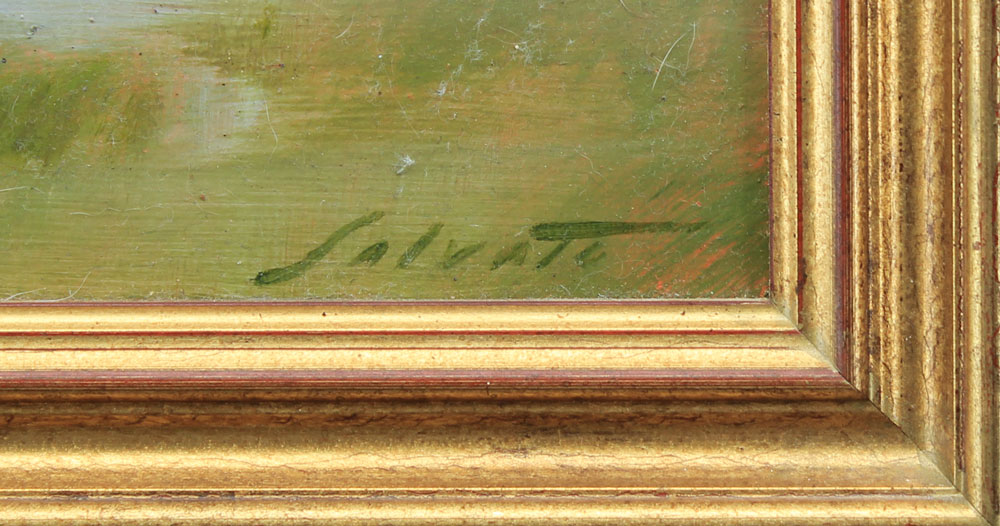 Coastal Marsh Painting signed Salvati: Oil/Board, 18'' x 24'', signed lower right, nicely framed, 22'' x 28''.