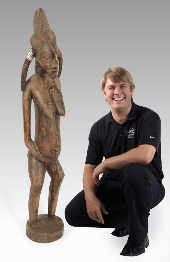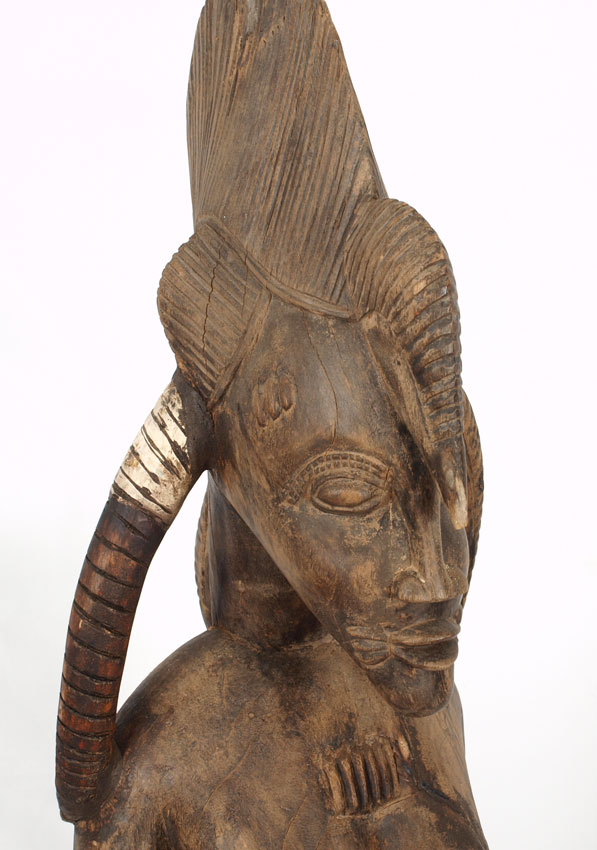 CARVED AFRICAN SENUFO MATERNITY FIGURE: 40 LBS., 57'' x 12'' x 12''.