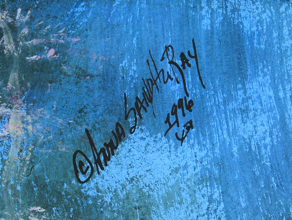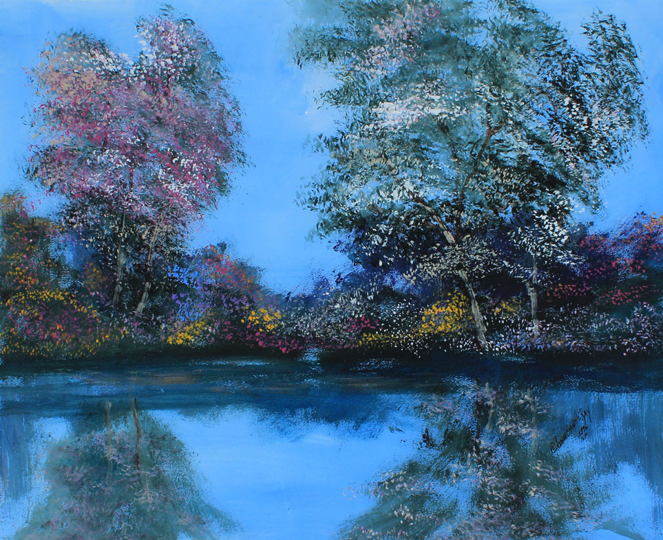 RAY, Anna Sandhu, (American, 20th Century): Springtime Blossoms by the River, Gouache, 22 1/2'' x 30'', signed lower right, dated 1996, contemporary frame, 33 1/2'' x 41''.