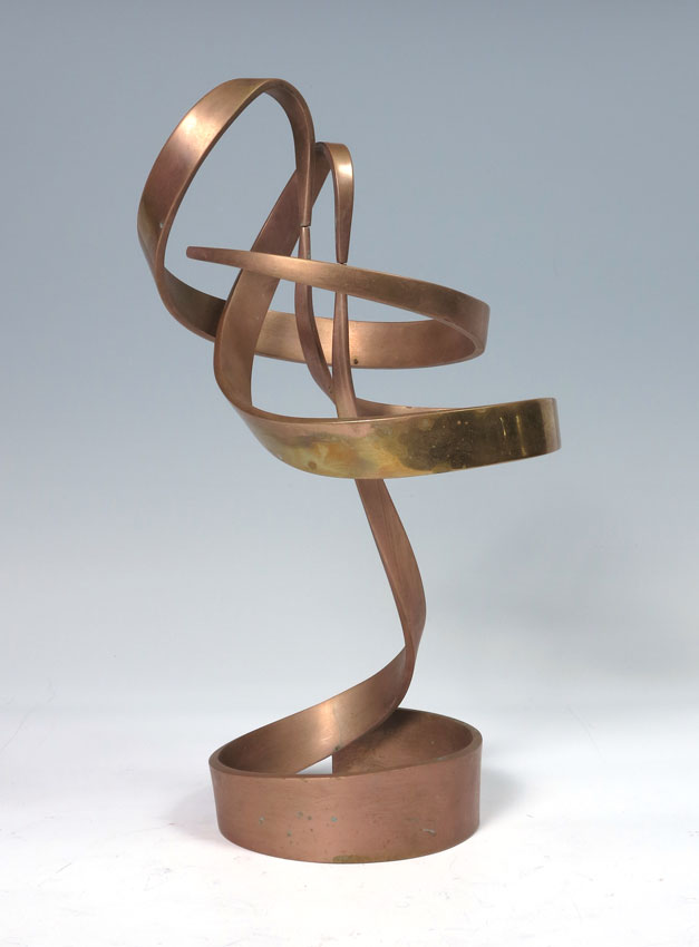 CLAYTON WHITEHOUSE AMORPHIC KINETIC BALANCE SCULPTURE: Patinated brass, signed Clayton 2004. Separates into 3 pieces. Assembled measures 16 1/4'' h. x 8 1/4''.