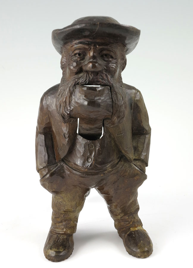 BLACK FOREST CARVED FULL FIGURAL NUTCRACKER: German figure of a standing man with hands in pockets, 7 3/4'' h. x 5 1/4'' x 3 3/4''.