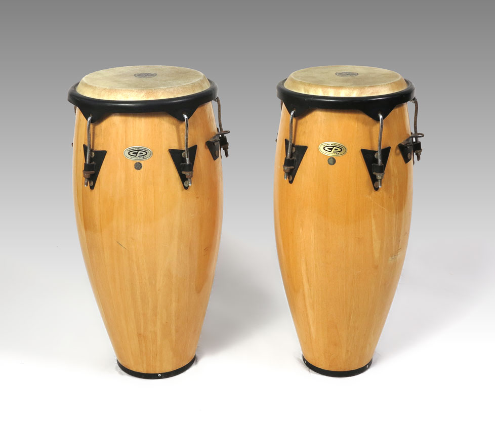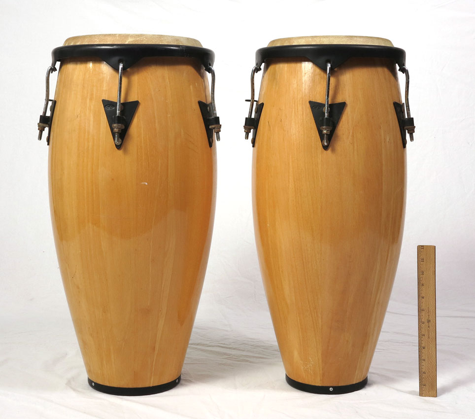 PAIR COSMIC PERCUSSION CONGA DRUMS: 28 1/4'' h. x 15'' overall dia.