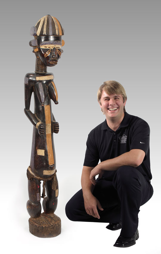 CARVED AFRICAN DAN FIGURE - IVORY COAST, LIBERIA: 46.5 LBS., 61'' x 10'' x 11''.
