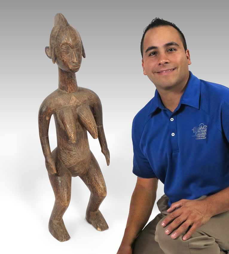 CARVED AFRICAN ATTYE FIGURE - IVORY COAST: 11 LBS., 32'' x 10'' x 9''.