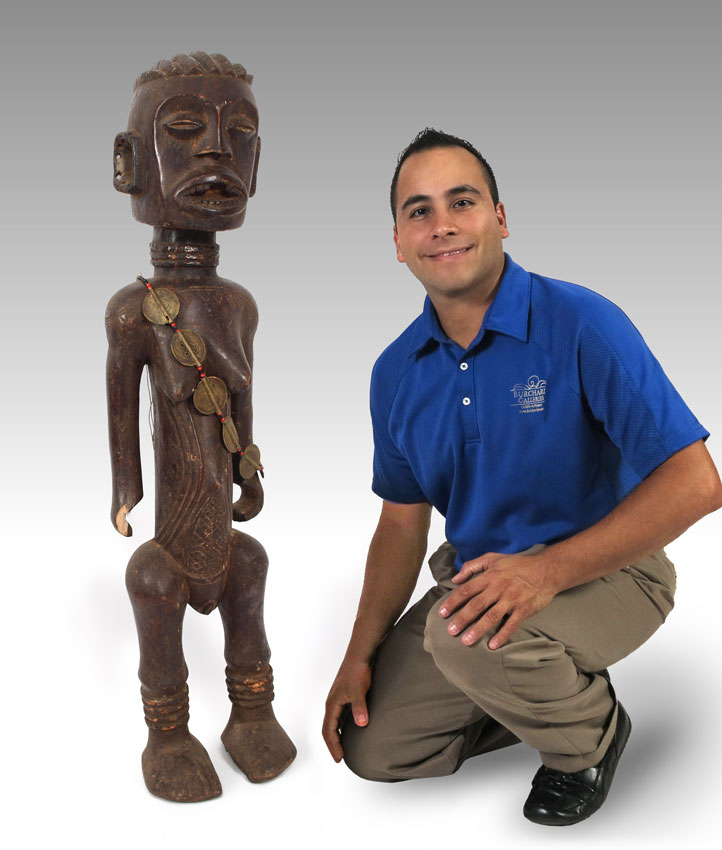 CARVED AFRICAN BAKONGO FIGURE - DEMOCRATIC REPUBLIC OF CONGO: 18 LBS., 40'' x 10'' x 8''.