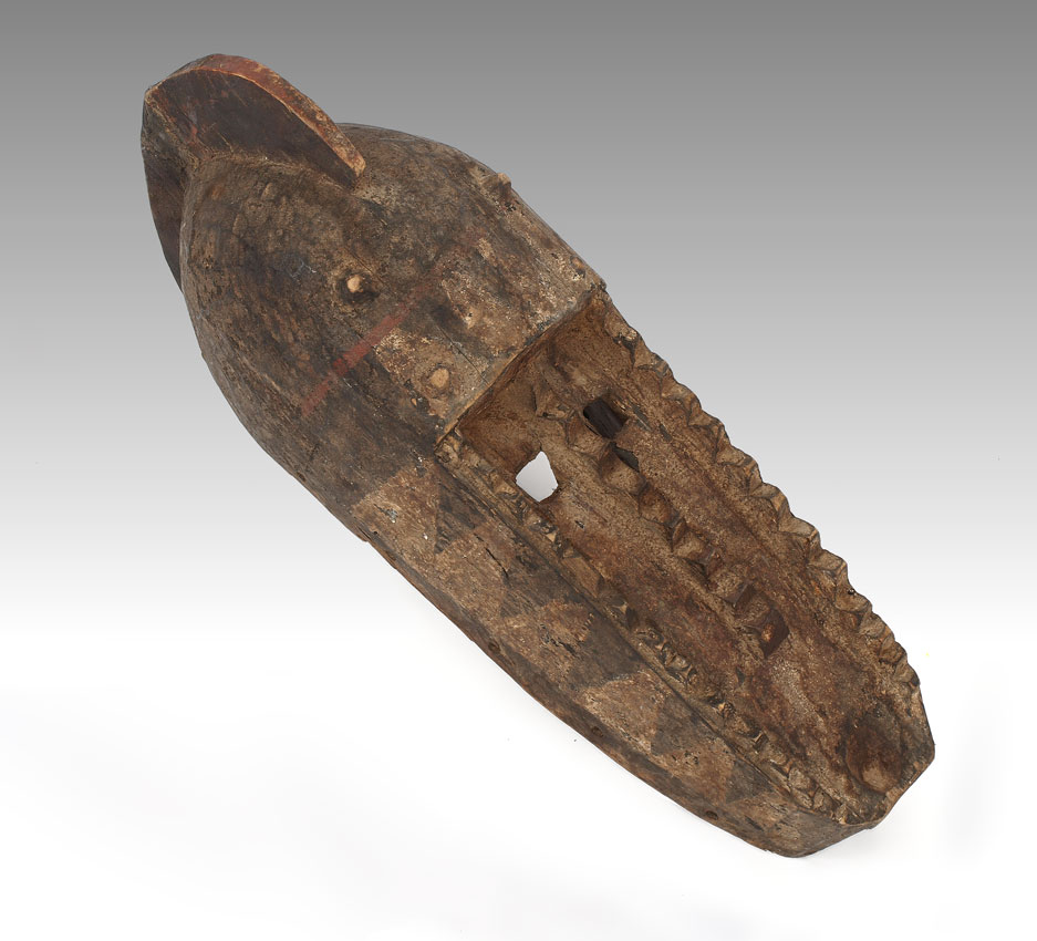CARVED AFRICAN BAMANA MASK - MALI: 8 LBS., 25'' x 7 1/2'' x 11''.