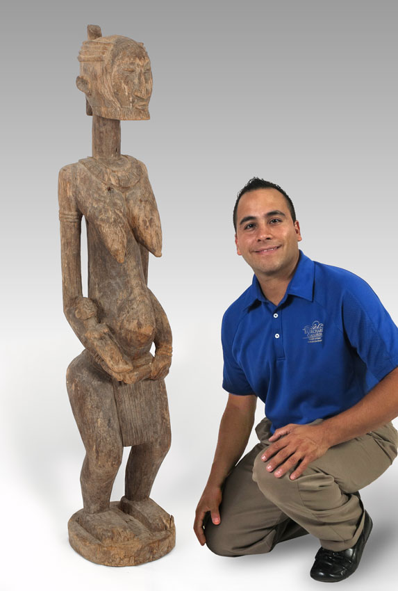 CARVED AFRICAN DOGON FIGURE: 61.5 LBS., 64'' x 11'' x 11''.