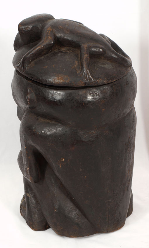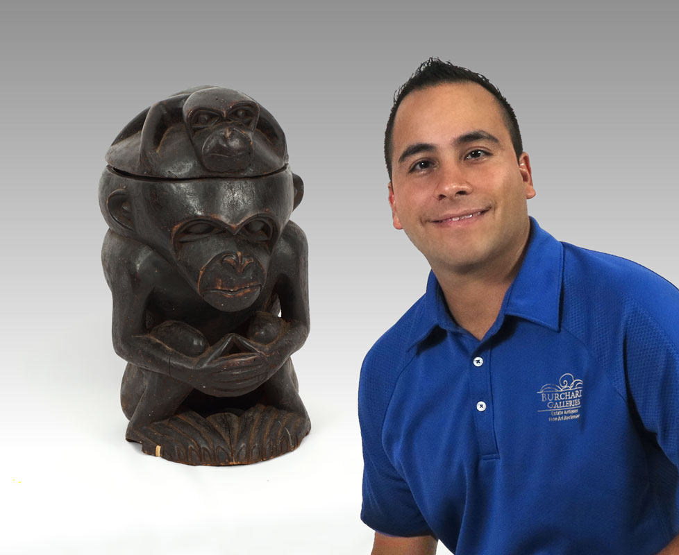 CONDITION: Chip at base, cracks in wood. Note all items from this estate have been recently fumigated, may have natural imperfections or old repairs.