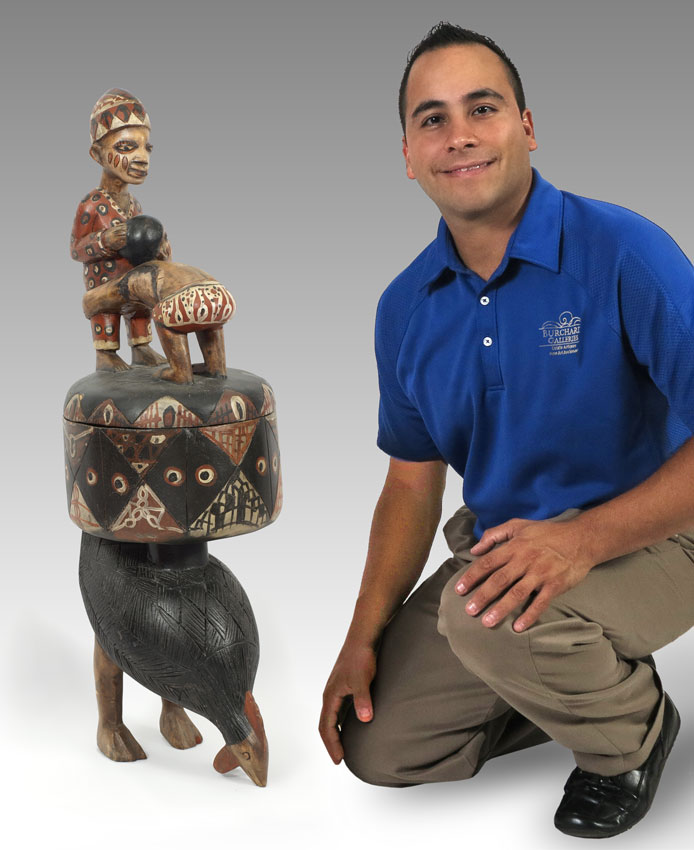 CARVED AFRICAN YORUBA DIVINATION BOWL - NIGERA: 15 LBS., 37'' x 11 1/2'' x 11 1/2''.