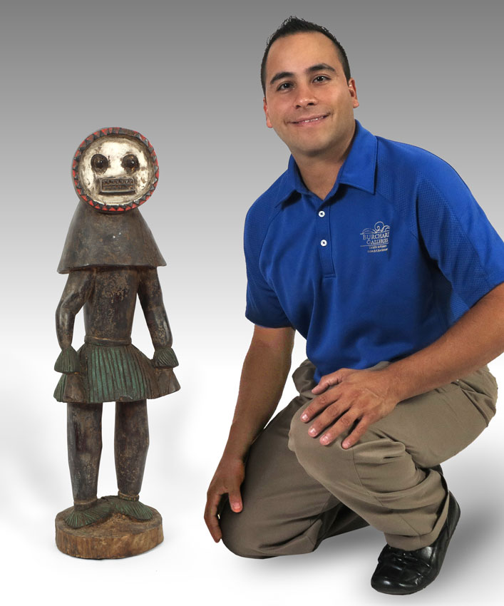 CARVED AFRICAN BAULE MASQUERADER FIGURE - IVORY COAST: 9 LBS., 31'' x 10'' x 9''.