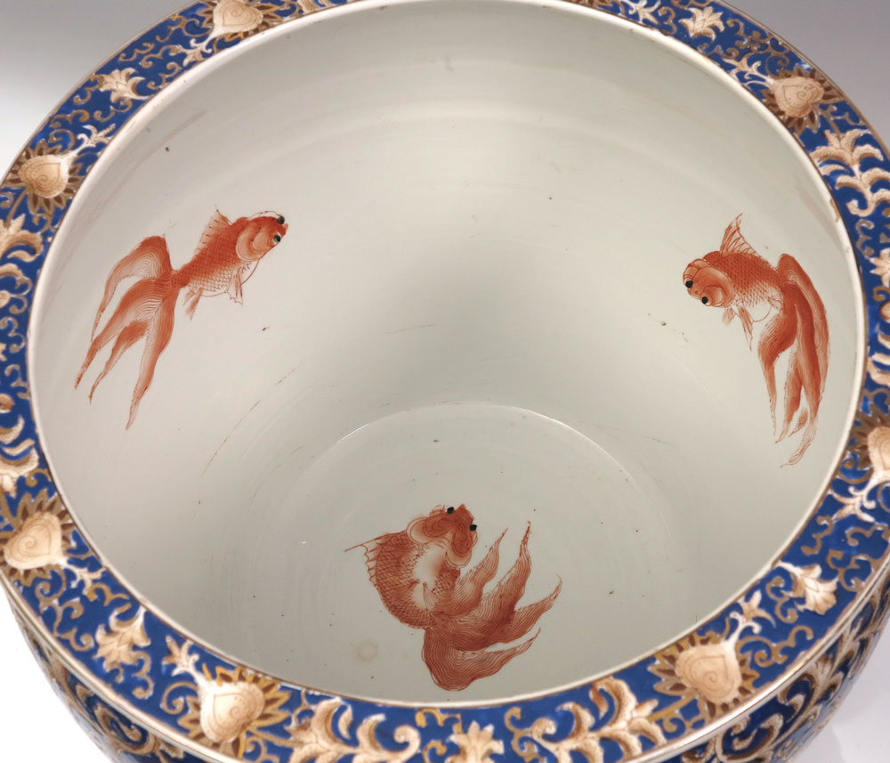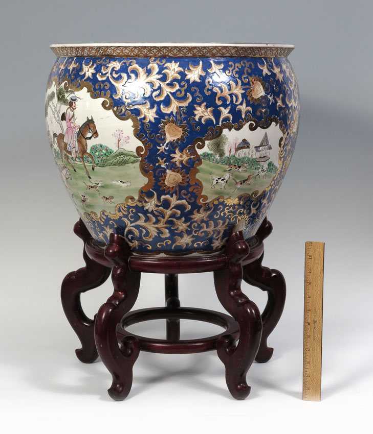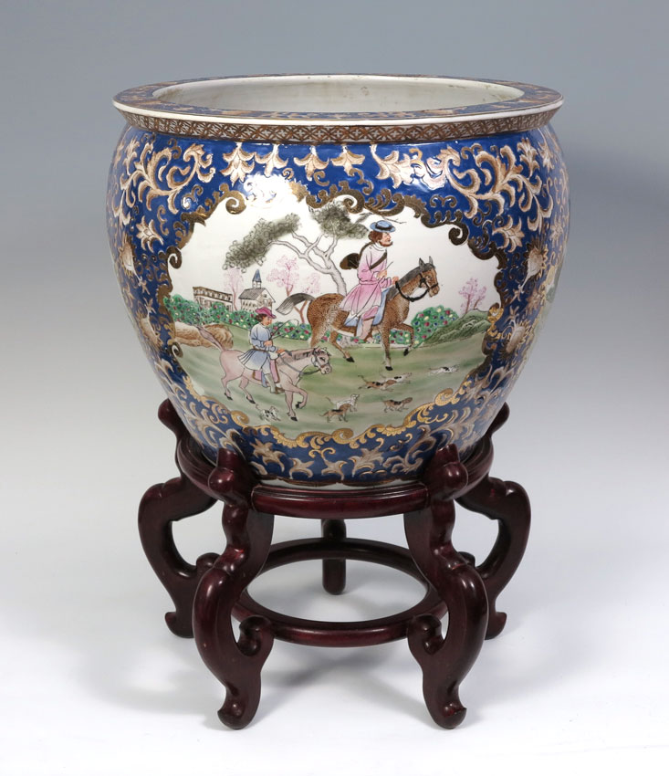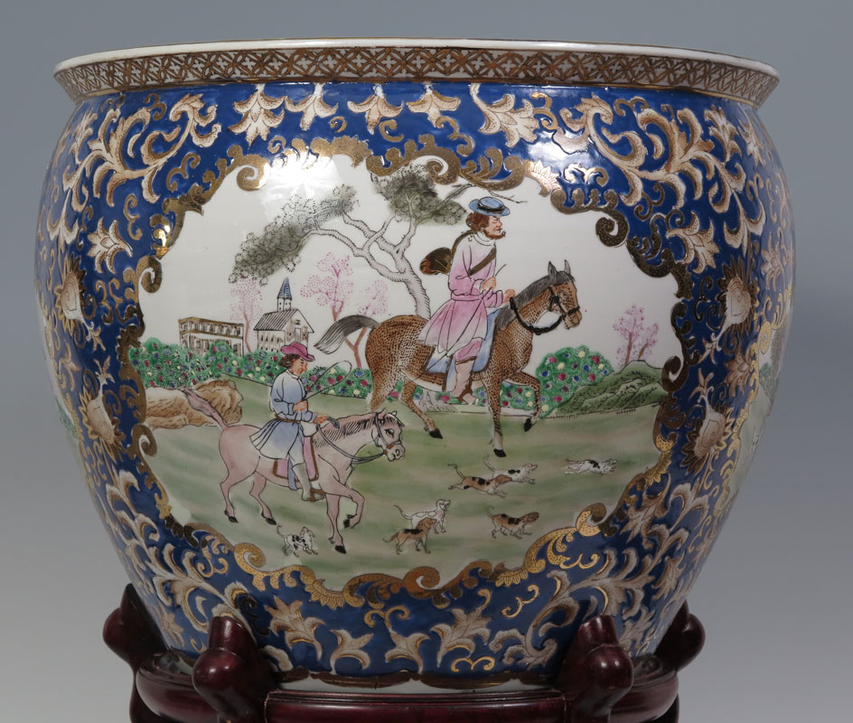 LARGE CHINESE WESTERN SCENE KOI BOWL: 19'' dia x 16'' tall.