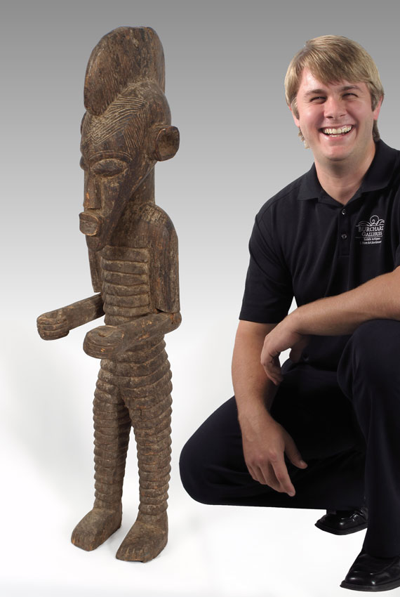 CARVED AFRICAN AFO FIGURE - NIGERIA: 39 LBS., 48'' x 10'' x 14''.