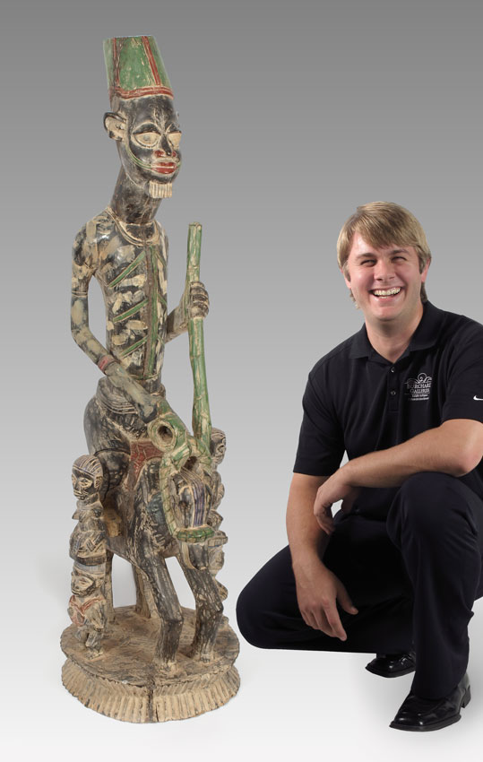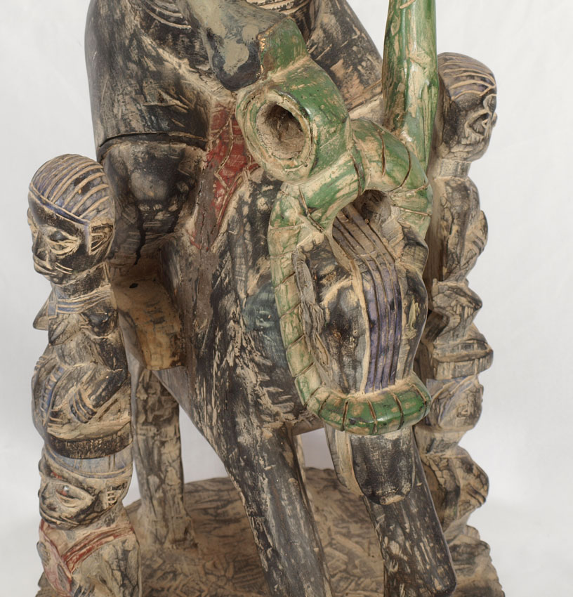 CARVED AFRICAN YORUBA CHIEF FIGURE - NIGERIA: 51 1/2 LBS., 56'' x 16'' x 16''.