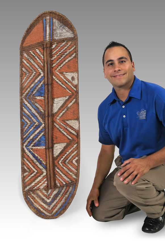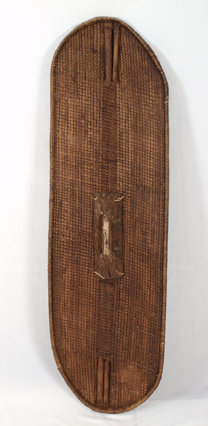 CARVED AFRICAN KUBA SHIELD - DEMOCRATIC REPUBLIC OF CONGO: 3 LBS., 47'' x 14'' x 3''.